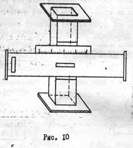 Структурная схема установки для измерения эквивалентной проводимости, сопротивления и характеристики направленности щелей приведены на рис.9. Полуволновые резонансные излучатели прорезаны в металлической пластине, которая может перемещаться относительно оси волновода (рис.10). Величина смещения щели ( х