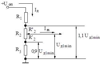 Для обеспечения задания порогов соответствующих напряжений на входах микросхем DA1 – DA3 необходим источник опорного напряжения на 12 В. Источник опорного напряжения должен обеспечивать ток нагрузки равный 0,008 А.