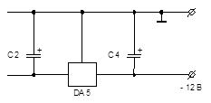 Конденсатор С3 выберем 510 мкФ, тем самым обеспечив минимальные пульсации стабилизированного напряжения. Применение этой микросхемы обеспечивает ток нагрузки до 1,5 А.. Отрицательный источник питания будем стабилизировать ИМ КР1168ЕН12А (рисунок 18). Применение КР1168ЕН12А обеспечит ток нагрузки до 0,1 А.. Ёмкость конденсатора С4 выберем равную С3 .