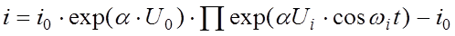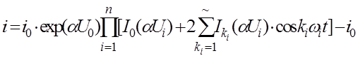Рассчитаем уровень комбинационных помех для этого случая. Ток, протекающий через диод, запишем в виде:
