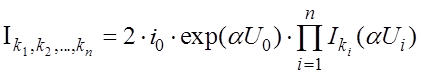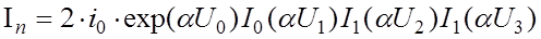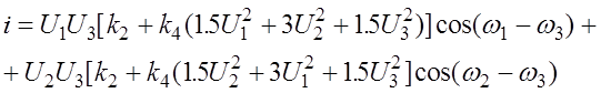 После перемножения из формулы (2.1.5) можно извлечь выражения всех спектральных составляющих тока на выходе полупроводникового преобразователя частоты. Комбинационные составляющие, образующиеся в результате взаимодействия всех компонент спектра входного сигнала, имеют амплитуды: