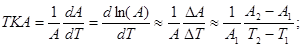 А называется относительное изменение величины А при изменении температуры на один градус.