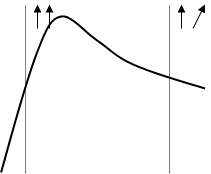 На рисунке 3.1 схематично показана структура атома железа, который содержит 26 электронов в четырёх оболочках. Цифры указывают количество электронов на подоболочках, направления спинов условно обозначены «+» и «-». На внешней 4s-оболочке находится два электрона со спинами, имеющими противоположное направление (спины скомпенсированы). Однако на внутренней подоболочке 3dнаходится шесть электронов, из них у четверых электронов спины не скомпенсированы. Иными словами, эта подоболочка является недостроенной. Между соседними атомами возникает обменное взаимодействие, характеризуемое значением интеграла обменной энергии. Оказывается, что величина и знак обменной энергии А зависит от отношения расстояния между атомами к радиусу незаполненной оболочки (рисунок 3.2). схематичный график зависимости А(a/r) показан на рисунке 3.3. различные участки этой зависимости характеризуют резко различающиеся друг от друга состояния магнитных сред, рассмотрены ниже.