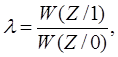 где W( Z/1) и W( Z/0) – условные функции плотности вероятности; и пороговое отношение правдоподобия λ0 , равное