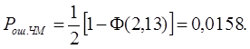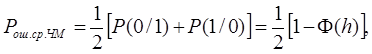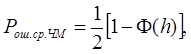 Вероятность ошибки на выходе приемника при применении согласованного фильтра определим по формуле: