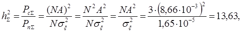 Р с ∑ = ( NA)2 , мощность помехи Р п ∑ = Nσ2 , где N - количество отсчетов. Отношение сигнал/шум в этом случае равно: