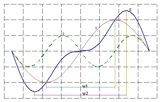 Увеличение I1max /I0 клистрона происходит при изменении формы кривой, по которой сообщается скоростная модуляция электронов. Если бы скорости изменялись не по синусоидальному закону, а линейно, то можно было бы собрать в одном сечении все электроны с периода и тогда КПД был бы близок к 100%. Однако получить пилообразное напряжение на зазоре резонатора нельзя. Можно приблизиться к этому закону, если одновременно на электронный поток воздействовать напряжением первой и второй гармоник. На рис.2.3 приведена диаграмма напряжения на зазоре первых двух гармоник и их суммы. Из рисунка видно, что область фаз эффективного группирования для двухчастотной модуляции значительно больше, чем при одночастотной модуляции. Эта идея может быть реализована различными способами.