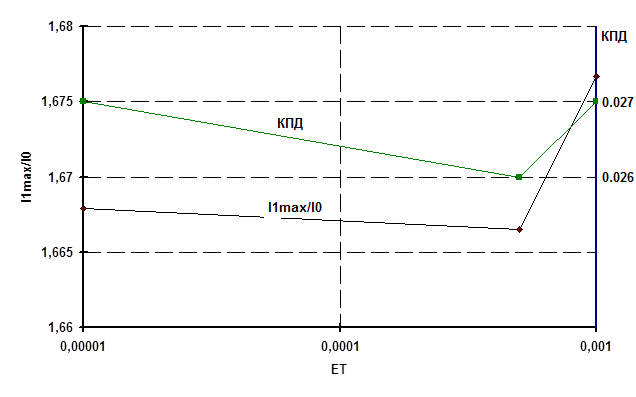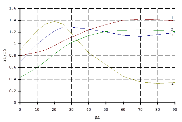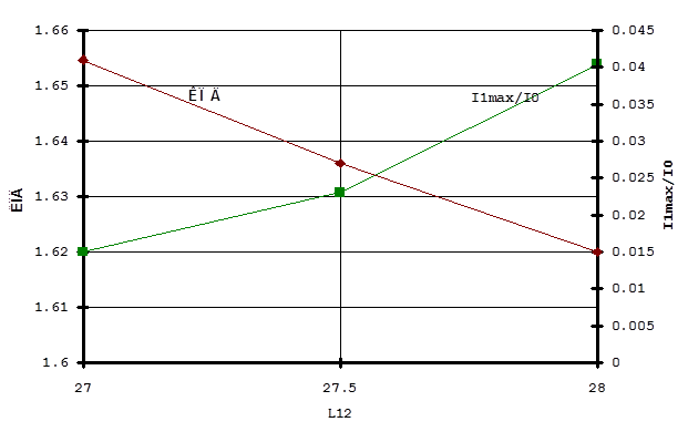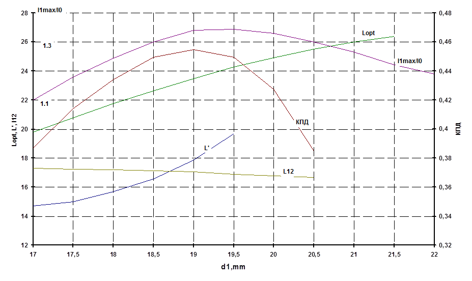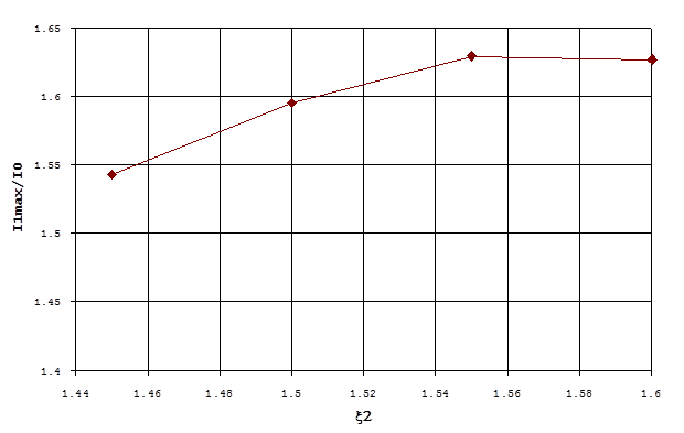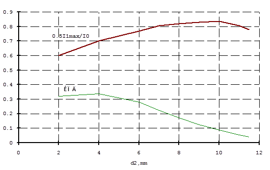 Анализ показывает, что достижение максимального I1max /I0 желательно при меньших значениях d1 , особенно при d1 , меньших того значения, при котором h1 =0.