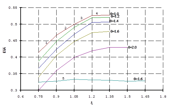 С 1992г на кафедре ЭП проводились работы по двум грантам по созданию двухзазорного однорезонаторного клистрона с широким входным зазором и высоким КПД. Исследования электронных процессов на основе двухмерной многослойной модели и холодные измерения резонатора показали возможность осуществления двухзазорного однорезонаторного клистрона с электронным КПД 56%, общим КПД 50% при углах пролета во входном зазоре около 3p/2 в области II (рис.2.1.). На базе приборов, выпускаемых промышленностью, спроектированы два автогенераторных однорезонаторных клистрона мощностью 2-2.5 кВт при ускоряющем напряжении 4 кВ на частоте 2450 МГц для технологических целей [10] На рис.2.6 приведены зависимости максимальных относительных амплитуд первой гармоники тока от угла пролета во входном зазоре для различных x1 , полученные при расчете электронных процессов.