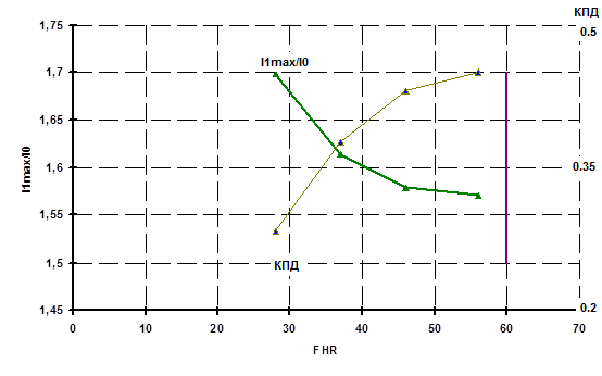 Интересные перспективы открываются при использовании неоднородного магнитного поля. Уже рассчитан прибор с I1max /I0 =1.75 и общим КПД hе å =0.7. Но усложнение конструкции вызванное неоднородным магнитным полем вынудило пока не считать ее в качестве основного варианта . В дальнейшем упомянутые конструкции будут дорабатываться.