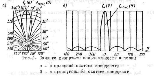 Чаще всего ДН изображается в полярной и прямоугольной системе координат (рис.2, а и б соответственно).