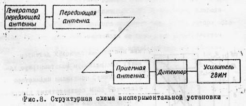 Экспериментальное снятие характеристики направленности директорной и рупорной антенн осуществляется с помощью установки, структурная схема которой приведена на рис.8. При исследовании директорной антенны в качестве генератора 1 применяется Г3-21, а рупорной - 51И. На вход измерительного усилителя 5 при этом подаются поочередно сигналы то с детектора директорной антенны, то с детектора рупорной антенны.