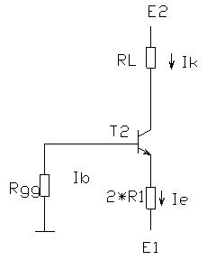 Для расчета режима ДК по постоянному току заменим правый БТ (рис 4а) током его эмиттера. Двойной ток Iе учтем путем удвоения номинала резистора R1 (рис 6).