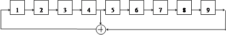 Возмем, для сравнения, 9-ти элементный регистр (рисунок 1), длина периода КСП которого