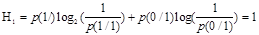 p(0)=p(1)=0.5 ; p(1/0)=p(0/0)=0.5; p(1/1)=p(0/1)=0.5;