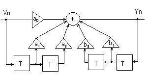 yn = a0 xn + a1 xn-1 + a2 xn-1 + b1 yn-1 + b2 yn-2 ,