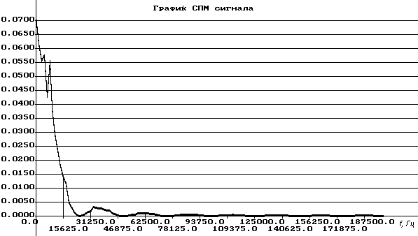 с помощью программы SPECTRSX определим основные параметры сигнала и построим его спектр (приняв скорость передачи равной 25000 Бод).
