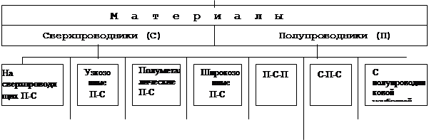 Диэлектрики, параэлектрики, сегнетоэлектрики | Полупроводники, полуметаллы, безщелевые и узкозонные полупроводники | Нормальные металлы | Сверхпроводники |