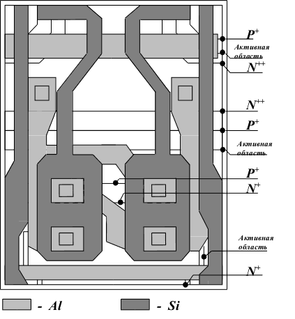 ТОПОЛОГИЯ ФРАГМЕНТА ОЗУ ИЗ ЧЕТЫРЕХ ЯЧЕЕК