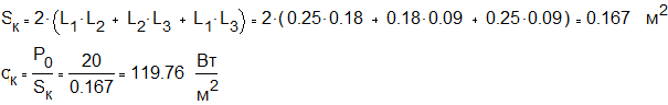 1. Рассчитываем удельную поверхностную мощность корпуса блока qк :