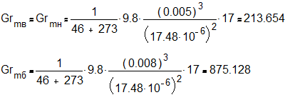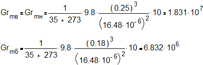 4. Для определяющей температуры tm = t0 + 0.5 Dtk = 30 + 0.5 10 =35 o C рассчитываем число Грасгофа Gr для каждой поверхности корпуса