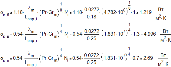 5. Рассчитаем коэффициент коэффициенты конвективного теплообмена между нагретой зоной и корпусом для каждой поверхности: