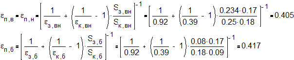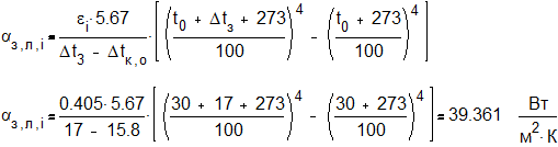 Так как приведенная степень черноты для разных поверхностей почти одинаковая, то мы можем принять ее равной eп = 0.405 и тогда