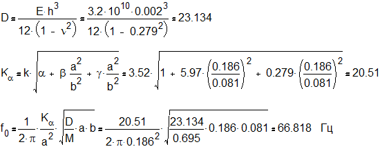 Подставляя значения параметров в формулу рассчитываем значение собственной частоты: