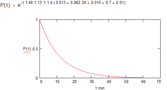 Среднее время жизни управляемого снаряда не превышает 1...2 минут и следовательно значение P(0.033) = 0.844, что вполне удовлетворяет техническим условиям.