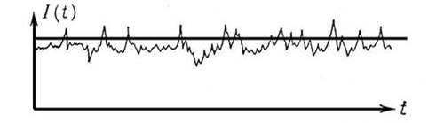 ), т. е. представляет собой сумму большого числа монохроматических колебаний с частотами в интервале Dn и произвольными фазами. Поэтому интенсивность излучения изменяется во времени случайным образом (рис. 8