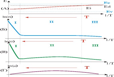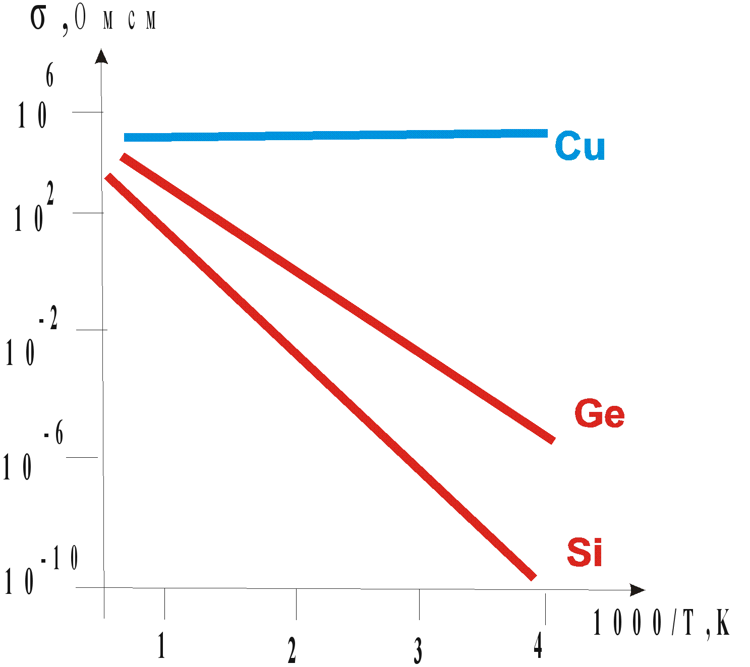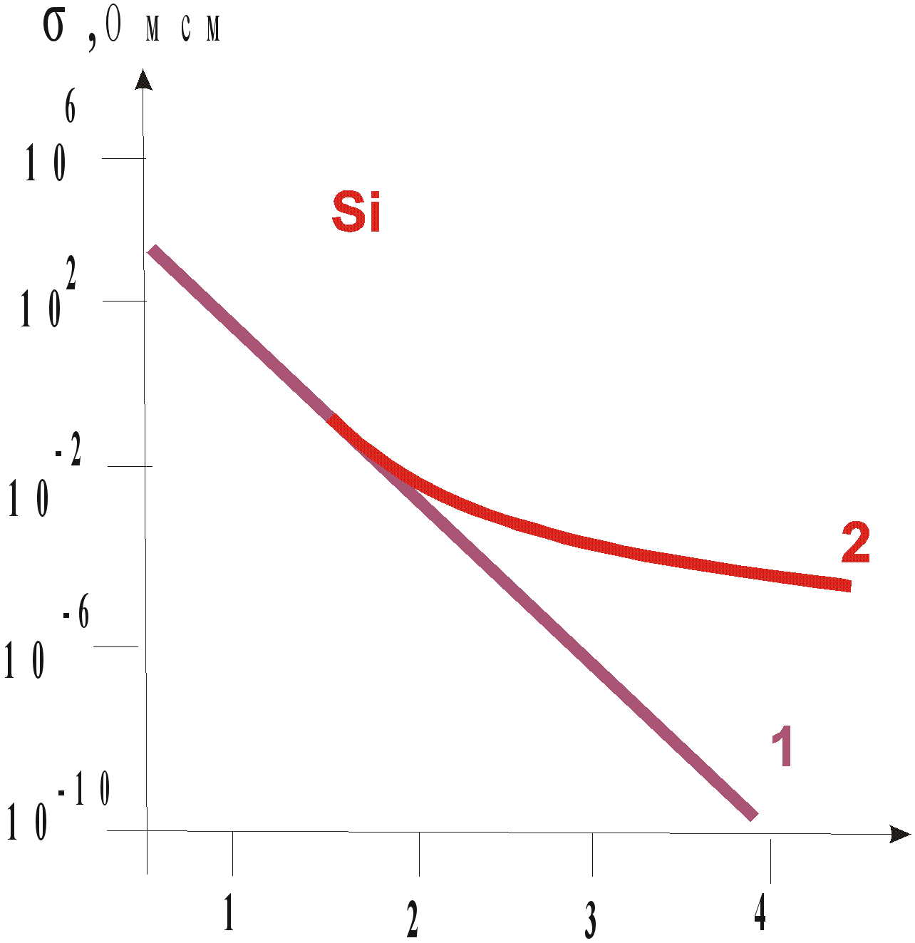 Рис. 1.1. Зависимость электропроводности не легированных материалов от температуры