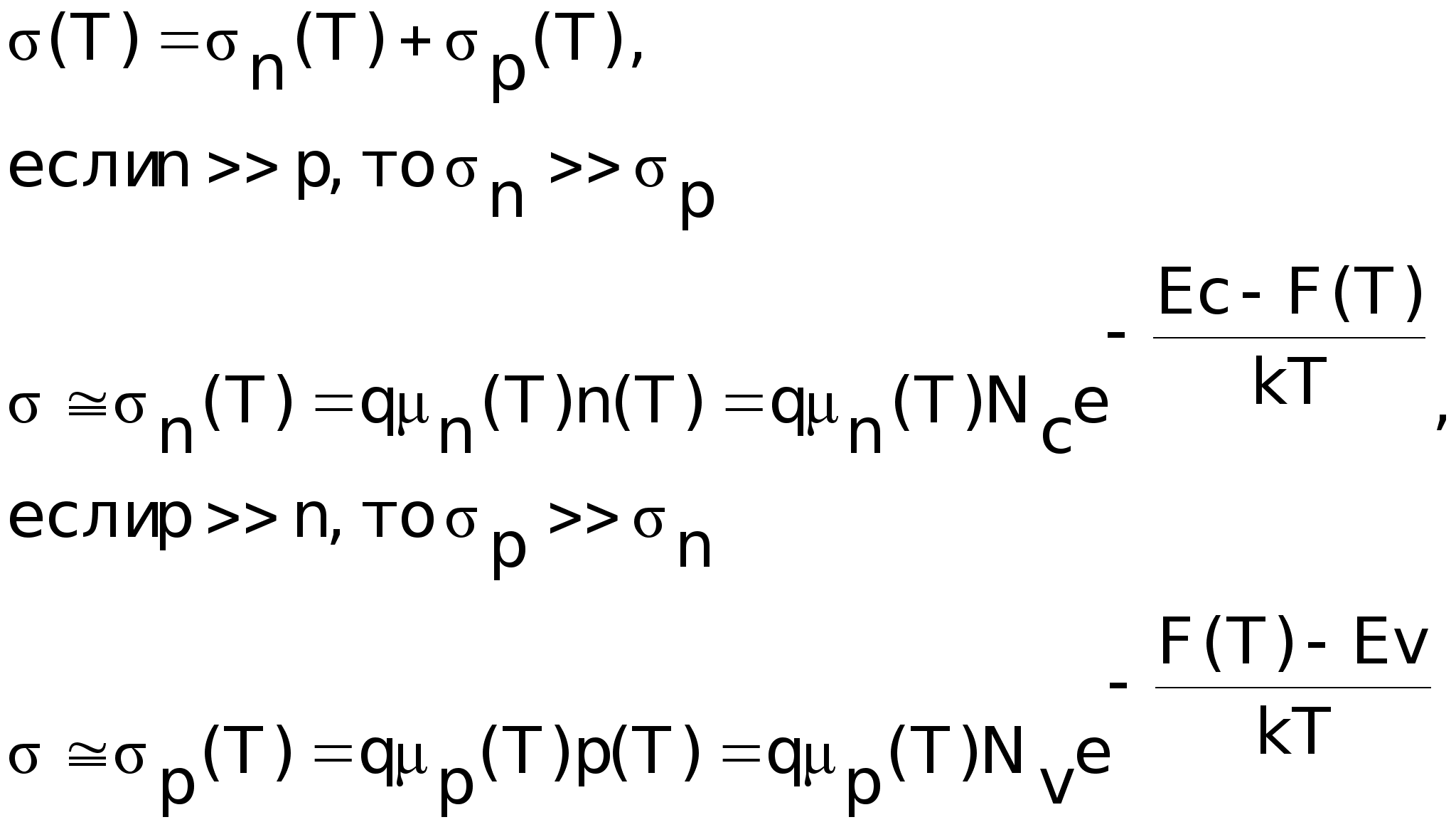 В полупроводниках, в которых отсутствуют дефекты и примеси (их принято называть собственными) с ростом температуры проводимость растет примерно по экспоненциальному закону: