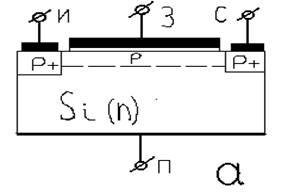 Рис. 2. Структура полевого транзистора с изолированным затвором: а - с индуцированным каналом ; б - со встроенным каналом.