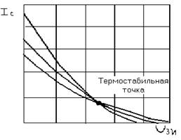 Зависимость изменения тока стока от температуры определяется двумя факторами: контактной разностью потенциалов р-п перехода и изменением подвижности основных носителей заряда в канале. При повышении температуры контактная разность потенциалов уменьшается, сопротивление канала падает, а ток увеличивается. Но повышение температуры приводит к уменьшению подвижности носителей заряда в канале и тока стока. При определенных условиях действие этих факторов взаимнокомпенсируется и ток полевого транзистора перестает зависеть от температуры. На рис. 5. приведены стокозатворные характеристики при различных температурах окружающей