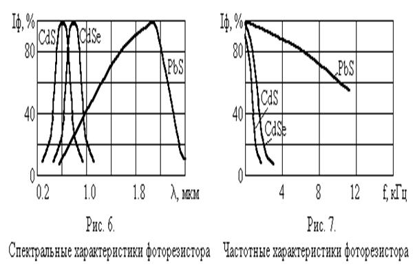 б) световая характеристика фотодиода, то есть зависимость фототока от освещенности, соответствует прямой пропорциональности фототока от освещенности. Это обусловлено тем, что толщина базы фотодиода значительно меньше диффузионной длины неосновных носителей заряда. То есть практически все неосновные носители заряда, возникшие в базе, принимают участие в образовании фототока.
