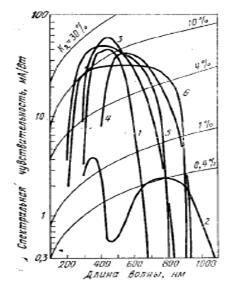 На рис. 2.7.8 приведены спектральные характеристики ряда ФЭУ