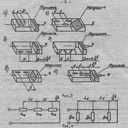 штырей (рис.3,е), или выполнять антенну из щелей, расположенных на расстоянии d не равном