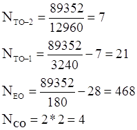 - нормативные периодичности ТО – 1 и ТО – 2