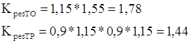 Определяем периодичность ТО-1 и ТО-2 автомобилей с учетом коэффициентов корректирования по следующим формулам: