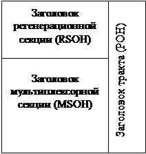 1. Секционный заголовок (SOH=RSOH+MSOH) – область сигнала, которая обеспечивается в каждом цикле SDH для выполнения функций, поддерживающих и обслуживающих транспортировку «виртуальных контейнеров» между смежными узлами сети