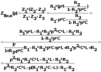 Для получения операторных выражений входного сопротивления ZВх (р) и коэффициента передачи по напряжения КН (р) воспользуемся методом преобразований.Для этого изобразим нагрузки в виде ,в которой она представлена на рис.2.2.
