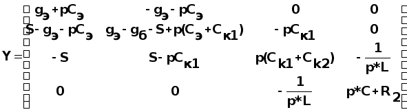 Для его осуществления,строят операторную схему замещения цепи,а затем ,по операторной схеме составляют матрицу проводимости. Из этой матрицы можно получить значения нужные нам операторные выражения (в частности входное сопротивление и коффициент передачи).