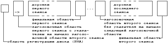 Чтобы представить себе механизм такого завершения, следует отметить, что в многосеансовых дисках в заголовочной области имеется указатель на начало следующего сеанса (его заголовочной области). Признаком промежуточного завершения служит указатель на начало еще не существующей заголовочной области на "чистом" месте CD-R. (Работа с CD-R представлена в Оранжевой книге). Отсутствие такого указателя является признаком окончательного завершения диска.