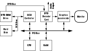 | Рис. 12. Модифицированная архитектура ПК направляет данные с накопителя DVD на декодер минуя системную шину. |