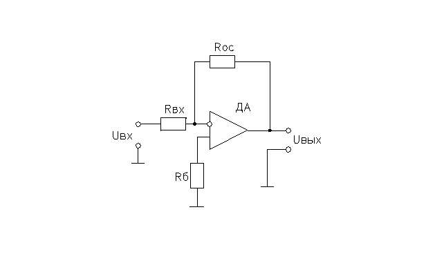Верхний на рисунках вход ОУ называется неинвертирующим входом (при подаче сигнала на этот вход фаза сигнала на выходе совпадает с фазой входного), а нижний — инвертирующим входом (при подаче сигнала на этот вход фаза сигнала на выходе противоположна фазе входного ).