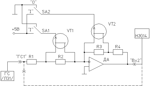 3.3.1. Мультиметр может подключатся попеременно к трем контрольным точкам схемы: “ГС1” , “Вх1” и “Вх2” .