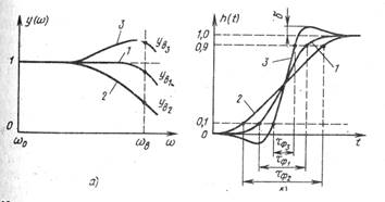 На рис. 1.1 приведены типичные случаи искажений АЧХ в области высоких частот полосы пропускания тракта и качественно соответствующие им формы ПХ в области малых времен, соизмеримых со временем передачи одного элемента изображения. Пусть форма кривых 1 этих характеристик соответствует номинальным, нормированным в соответствии с принятыми параметрами ТВ системы и допустимыми искажениями изображения: спадом АЧХ на верхней граничной частоте fв(или сов ) полосы пропускания уа{ и длительностью фронта ПХтф1 , отсчитываемой от уровня 0,1 до уровня 0,9 ее установившегося значения.