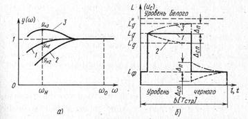 Как известно, линейные искажения тракта и его участков описываются с помощью разных, но полностью равноправных методов анализа с помощью частотных характеристик: y(w)- амплитудно-частотной (АЧХ), ф(w)- фазо-частотной (ФЧХ), а также с помощью h(t)- переходной характеристики ПХ как реакции системы на единичный скачок яркости (или сигнала изображения). "Язык" частотных характеристик более удобен для анализа конкретных причин, способов коррекции и определения результирующих искажений тракта по частным параметрам его участков. Недостаток этого метода трудность интерпретации (отождествления) влияния величин и характера линейных искажений на проявление их в изображении. Достоинство ПХ- четкая качественная связь искажений изображения с искажениями формы ТВ сигнала. Поэтому эти методы удачно дополняют друг друга, что и определяет целесообразность их сопоставления.