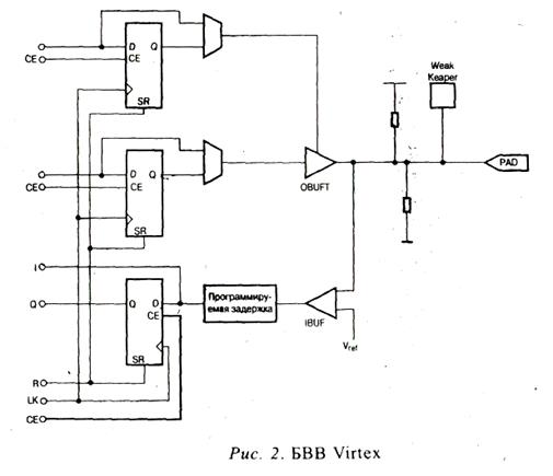 Основным отличительным свойством EBB семейства Virtex является поддержка широкого спектра стандартов сигналов ввода-вывода. На Рис. 2 представлена структурная схема БВВ. В Табл. 3 перечислены поддерживаемые стандарты.