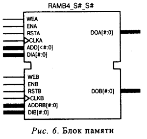 — встроенная блочная память, каждый блок конфигурируется как синхронное двухпортовое ОЗУ емкостью 4 Кбит;
